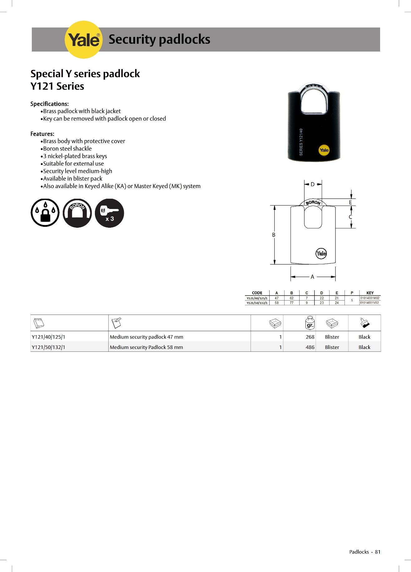 Yale Special Y Series Padlock Y121 Series