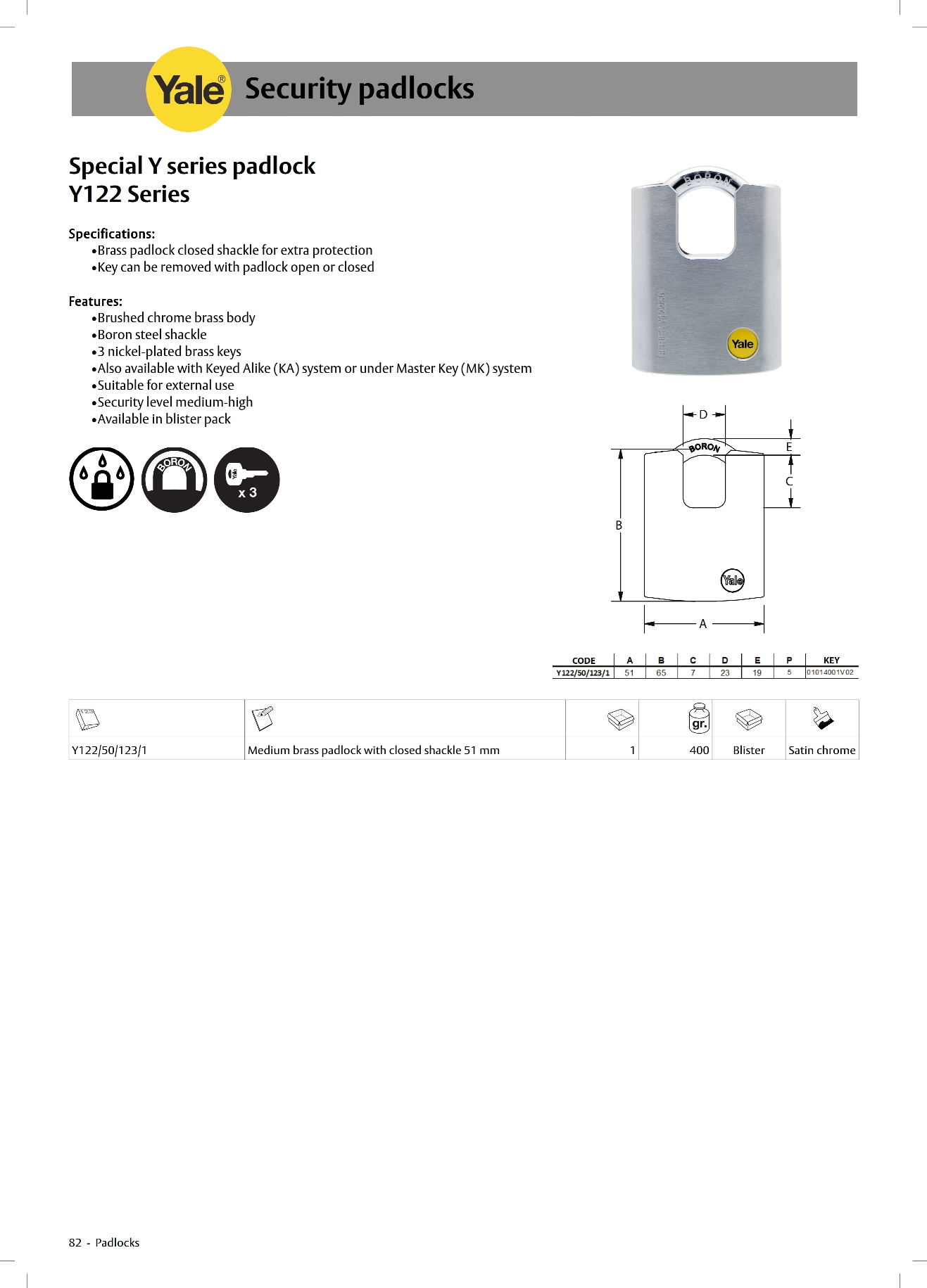 Yale Special Y Series Padlock Y122 Series