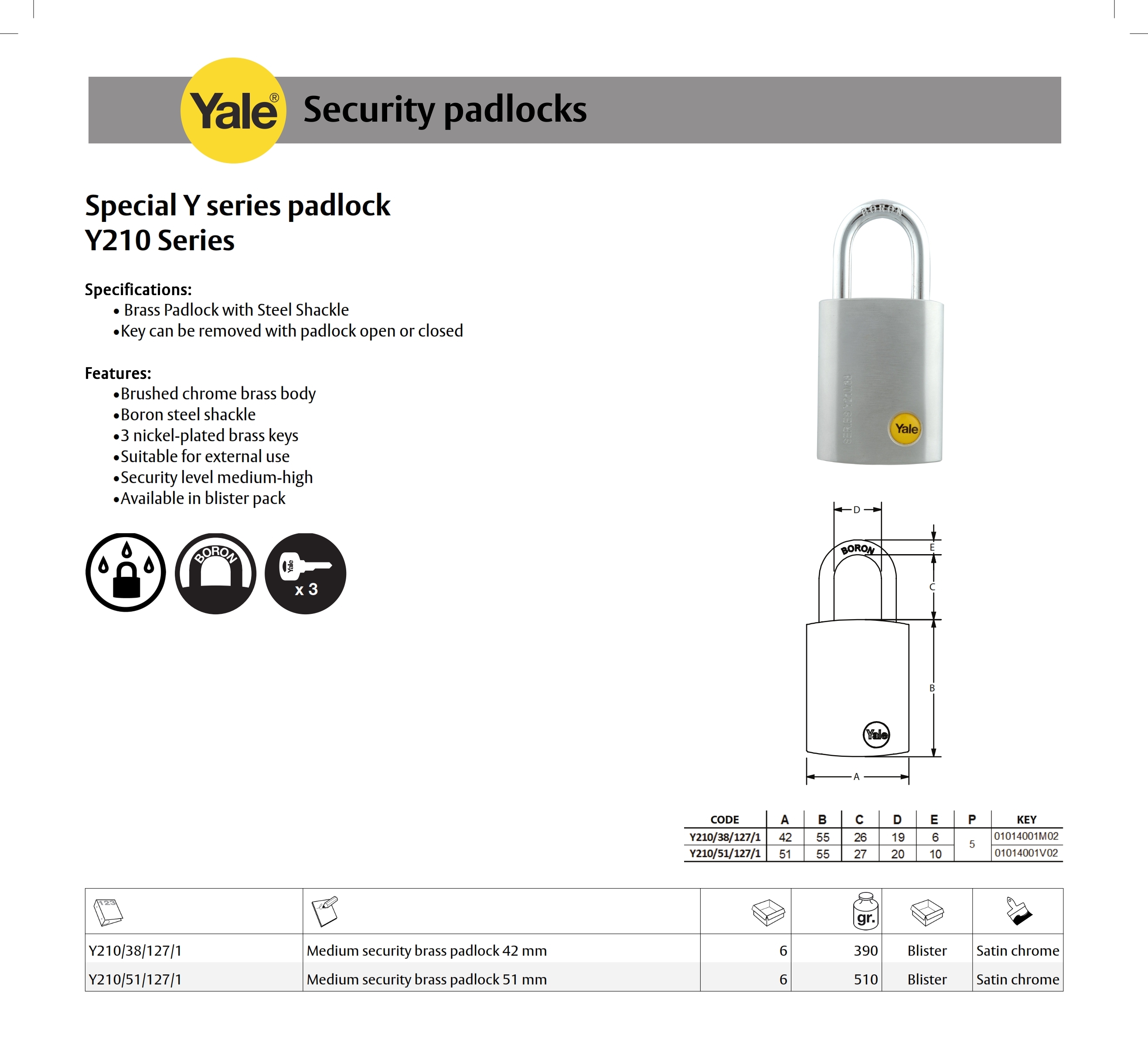 Yale Special Y Series Padlock Y210 Series
