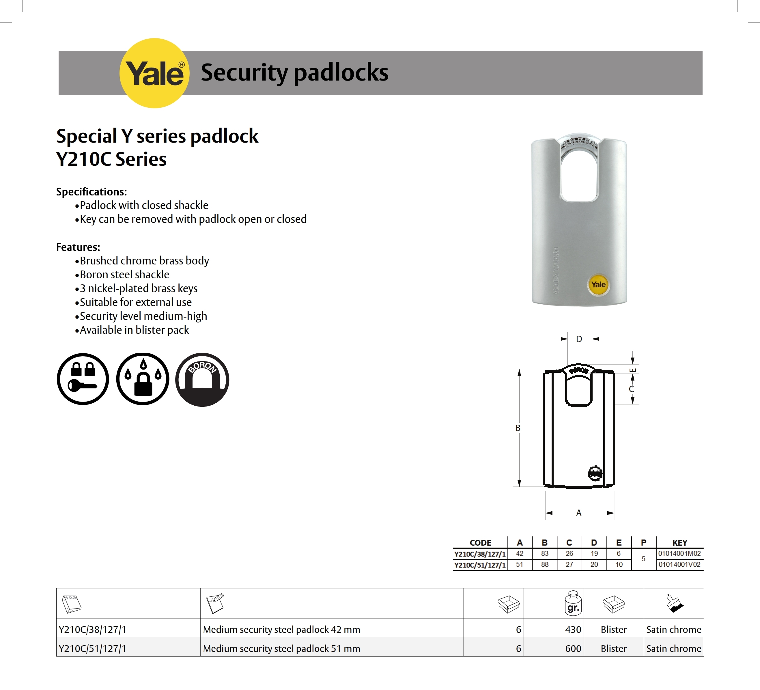 Yale Special Y Series Padlock Y210C Series