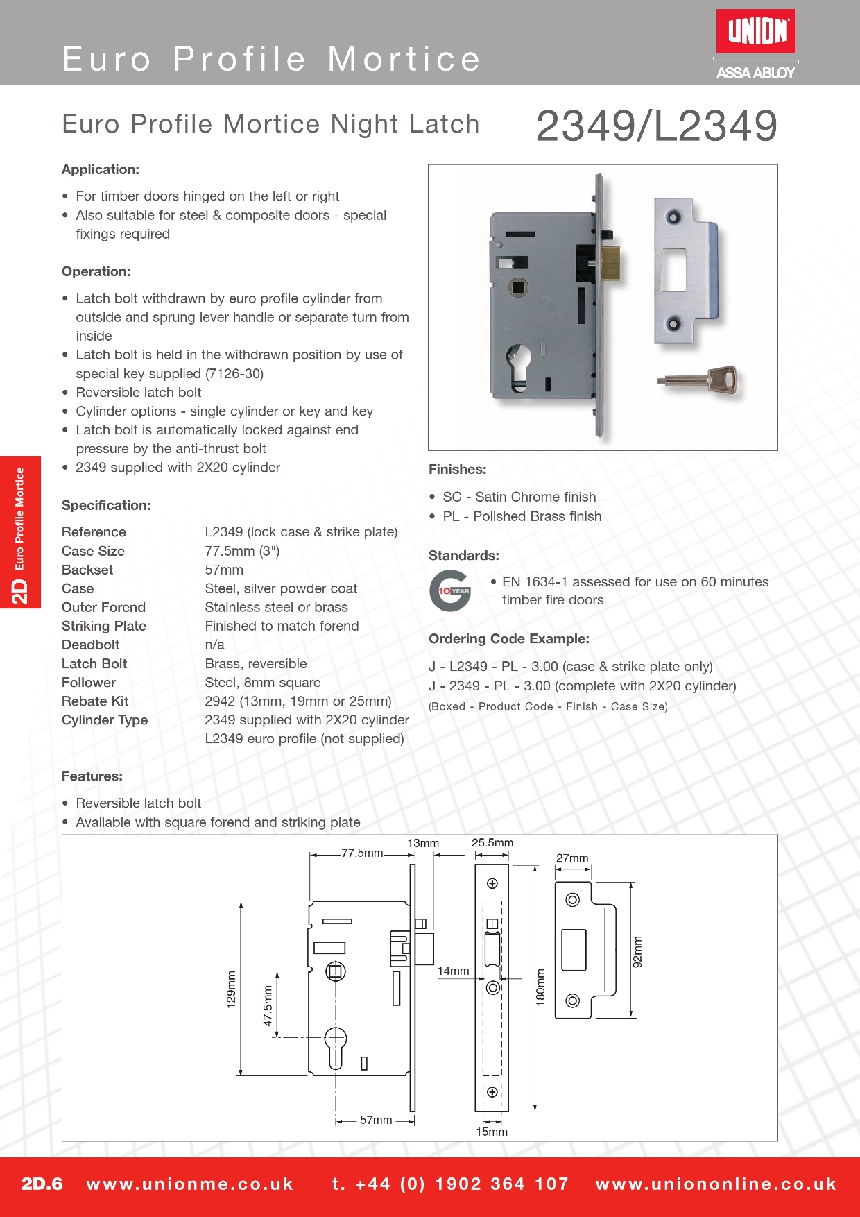 UNION Euro Profile Mortice Night Latch 2349/L2349